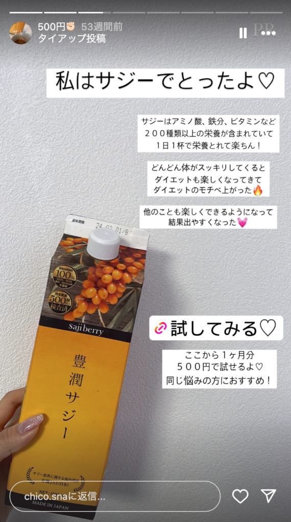 例えば、「こんな悩みを解決できるアイテムです!」とフォロワーの視点に立って説明したり、ビフォーアフターや使い方の具体例を示したりすることで、より興味を持ってもらえます。