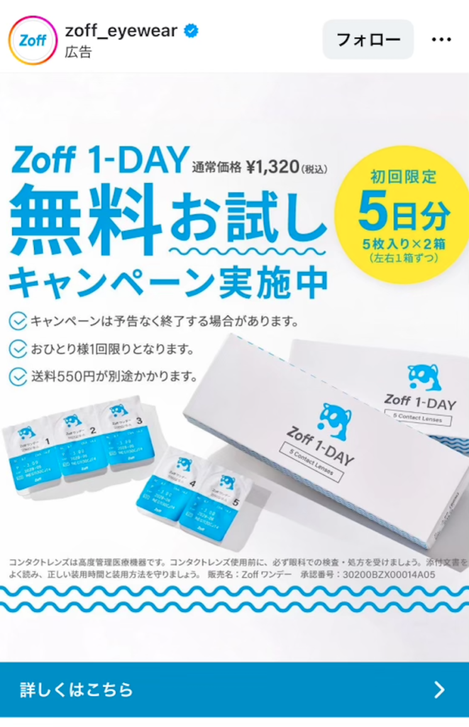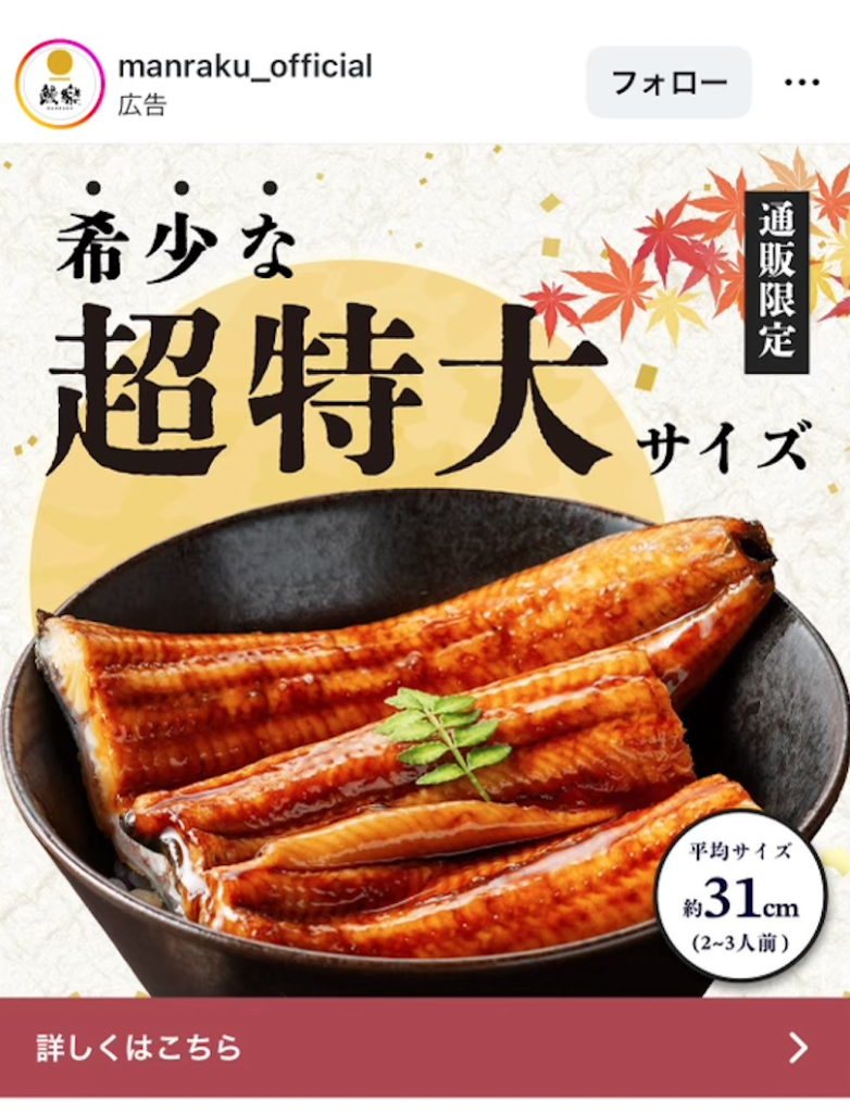 さらに、Instagram広告では「購入ボタン」や「詳しくはこちら」などのリンクを設置できるため、興味を持ったユーザーをそのまま自社サイトやECサイトに誘導できます。